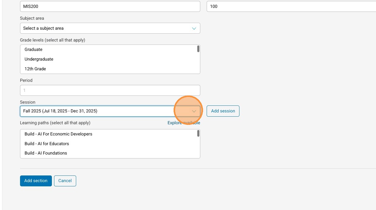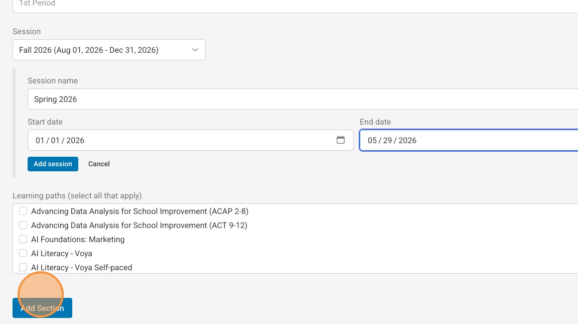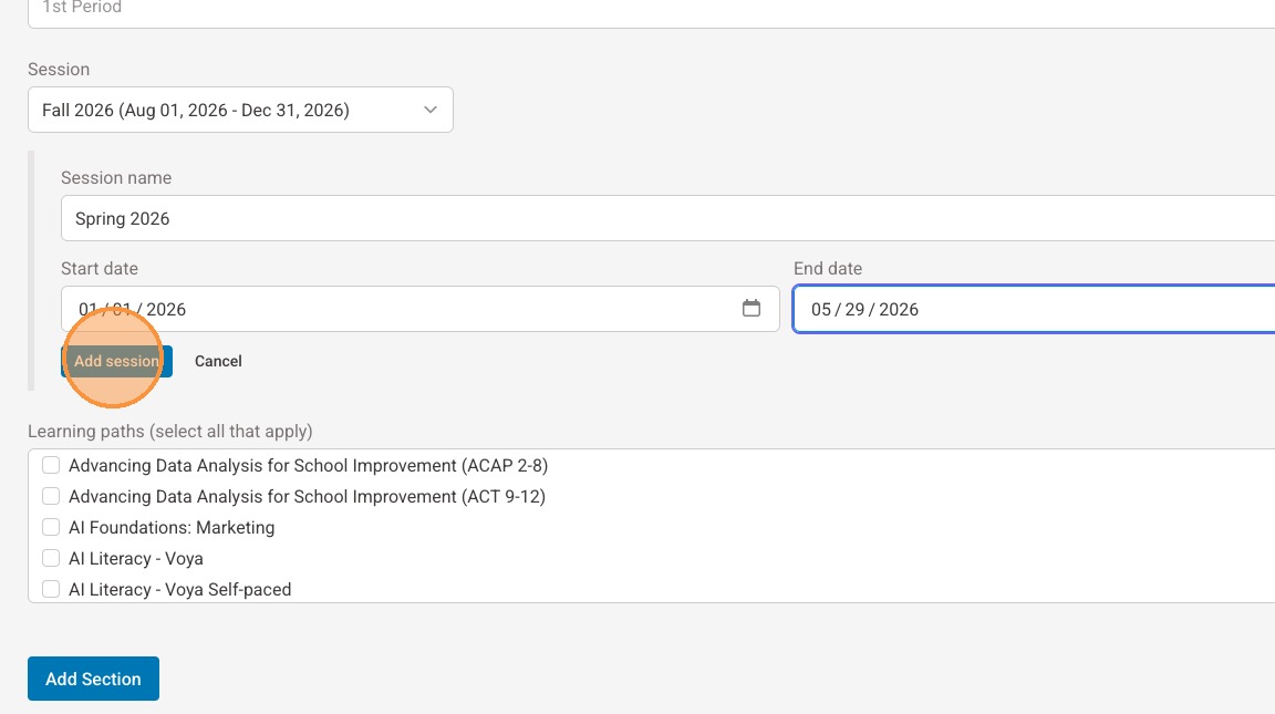 13. Select "Add session"