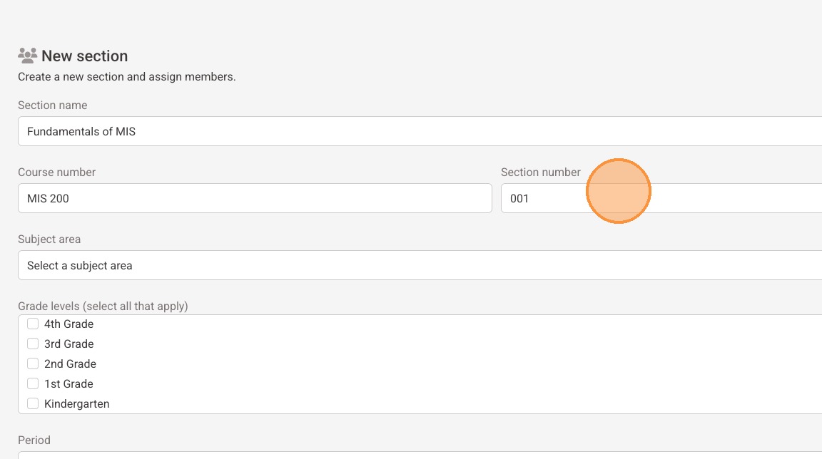 7. Enter the section number.