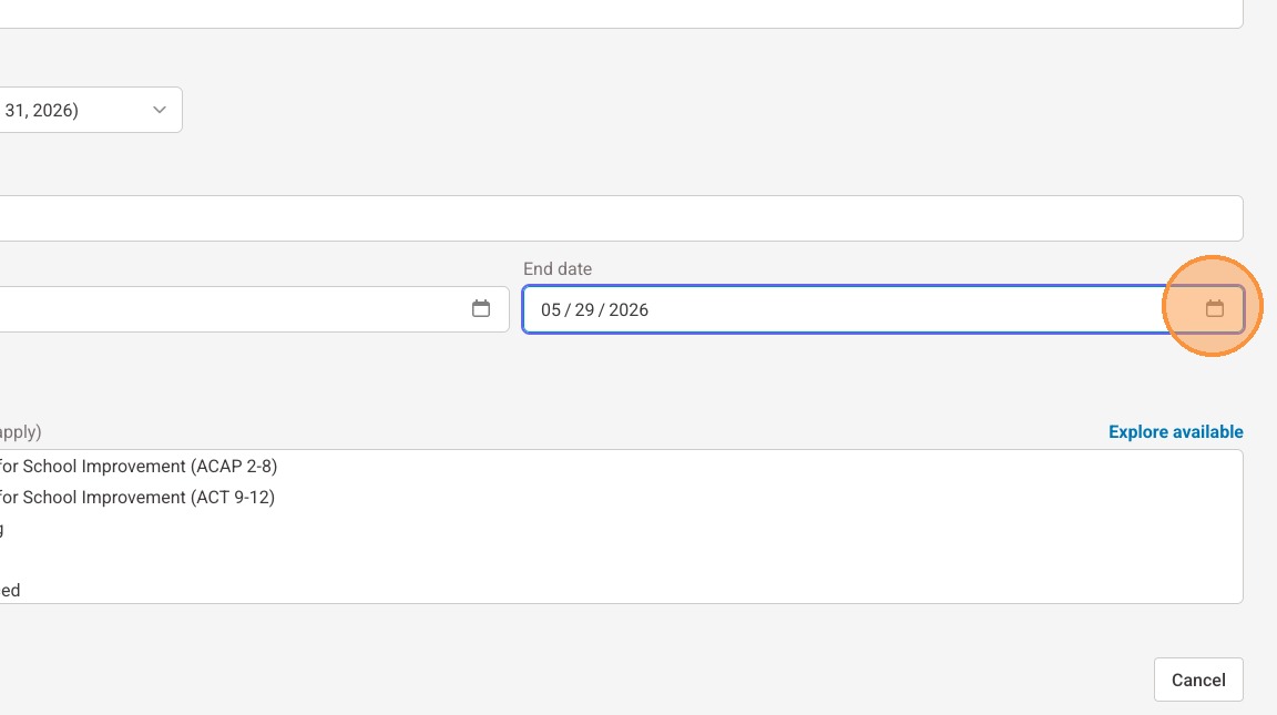 12. Use the date picker to select the end date for the session.