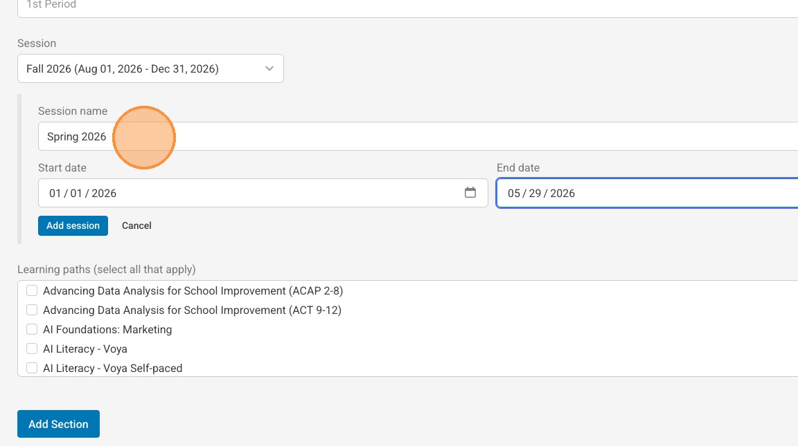 11. Use the date picker to select the start date for the session.