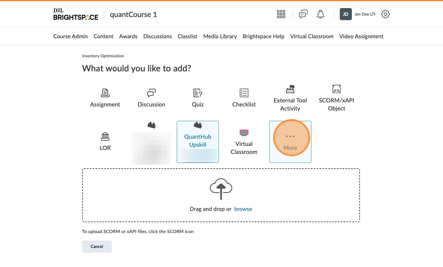 5. If you do not see QuantHub Upskill, select more.