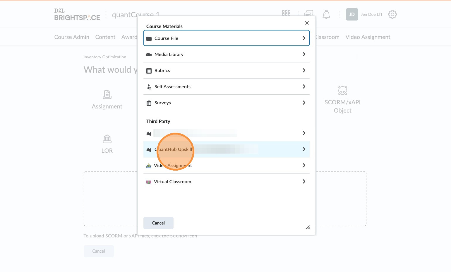 6. Select "QuantHub Upskill" in the Third Party section.