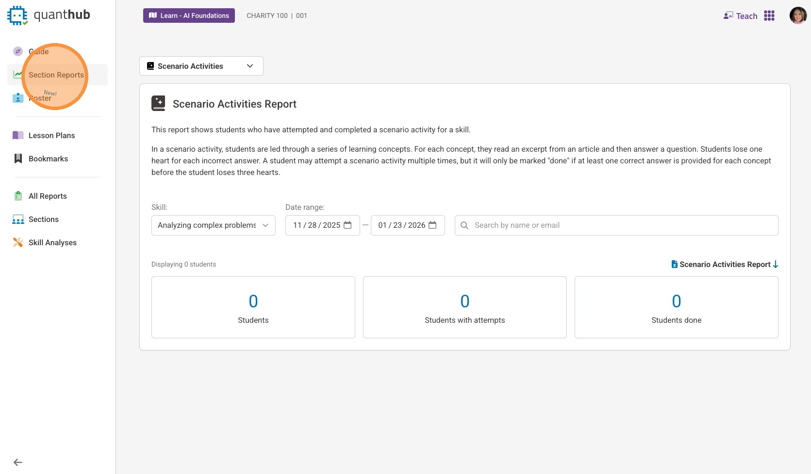 10. QuantHub has additional reports to help you gauge learner engagement.