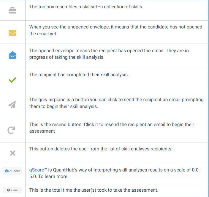 - You also have the option to send the skill analysis via the grey airplane icon. This will send an identical email to the recipient prompting them to begin the assessment.