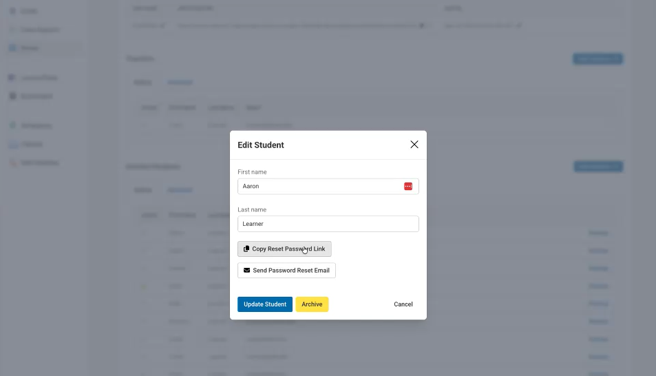 • If a student has email connected, you can "Send Password Reset Email"