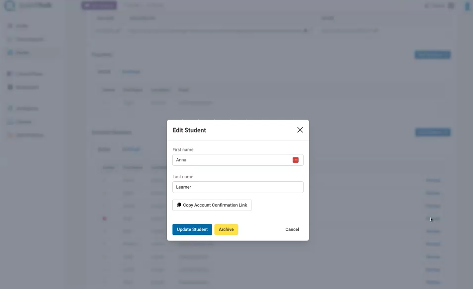 1. Select the student and select "Copy Account Confirmation Link."
